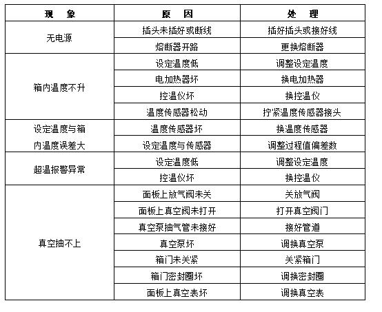 真空干燥箱設備故障現象及故障分析及解決方案: